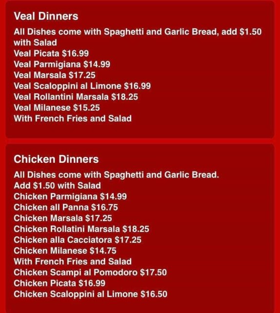 Veal Dinners (All dishes come with Spaghetti and Garlic Bread)